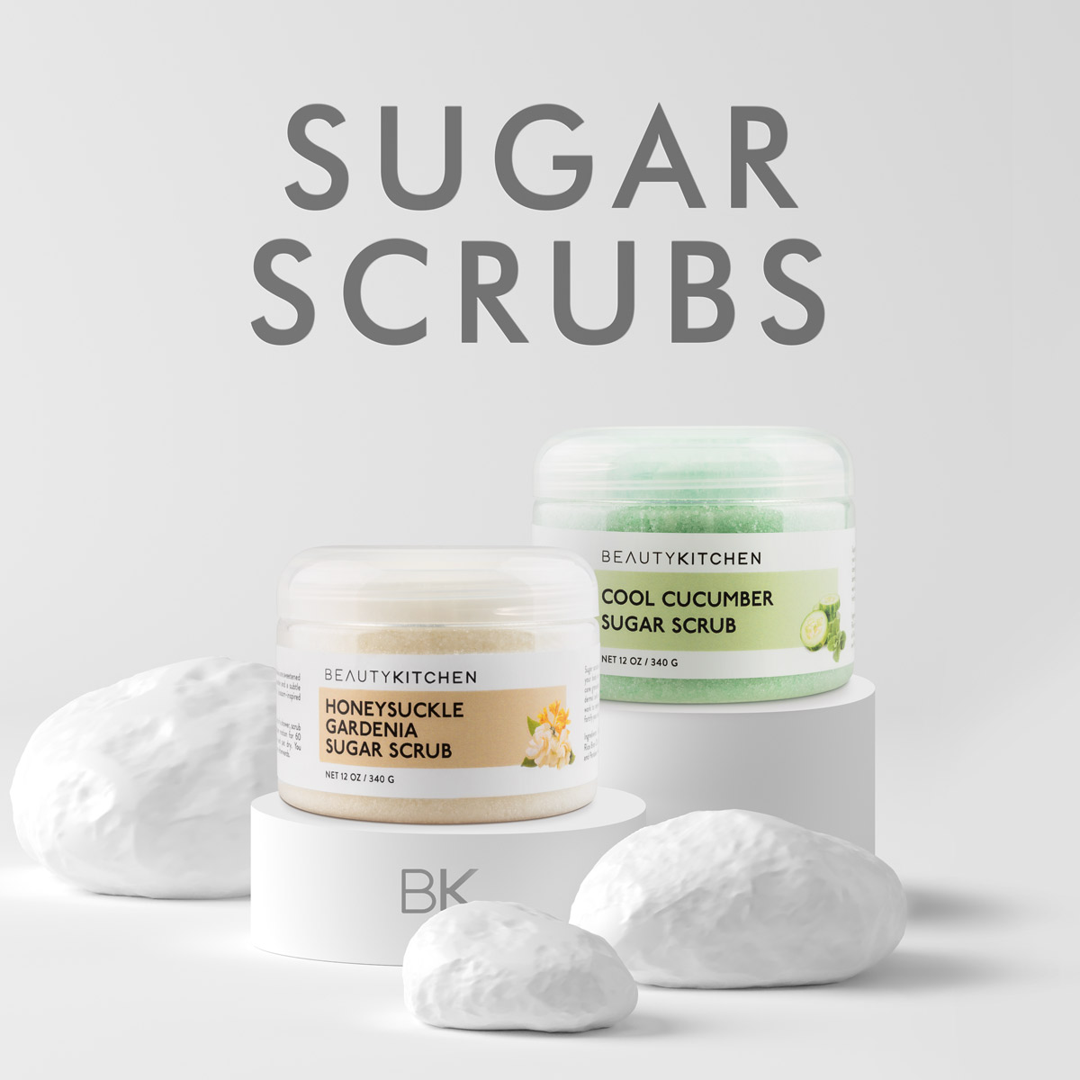 If you’ve been following Beauty Kitchen for a while, you probably have heard me mention how my passion for clean skincare ignited a business adventure that began twelve years ago in the comfort of my own home. What you may NOT already know is that my very first skincare product that DIYed was Sugar Scrubs! These scrubs, which later became the foundation of my thriving beauty brand, were initially humble experiments in my very own kitchen. Even so many years later, I still love making scrubs and using them daily! In this blog post, I’m excited to give you a peek behind the curtain on why sugar scrubs are still a fan favorite for any beauty junkie.